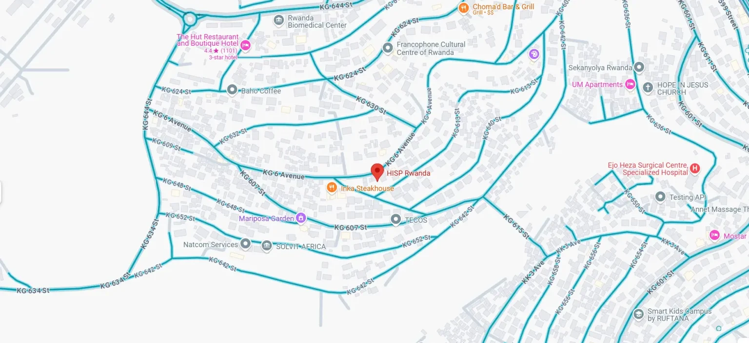 Contact Us We’re here to support your journey toward effective health information systems. Whether you’re seeking collaboration, training, or have general inquiries, our team is ready to assist. Get in Touch +250 791 590 407 +250 791 590 406 hisp.rwanda@gmail.com contact@hisprwanda.org Kigali - Kimihurura - Rugando Please enable JavaScript in your browser to complete this form.Please enable JavaScript in your browser to complete this form. contact Email Name Name *FirstLastEmail *Reason for contactGeneral InquiryPartnership or Collaboration RequestRequest for DHIS2 Implementation or SupportMedia or Press InquiryTraining or Workshop EnrollmentMessage *Submit